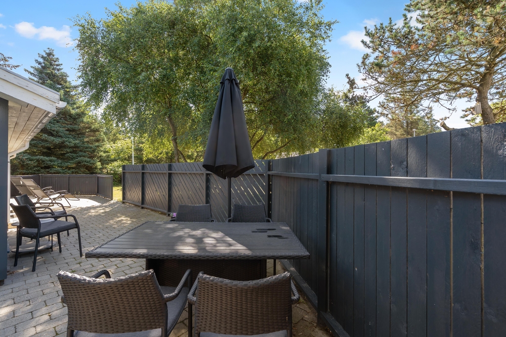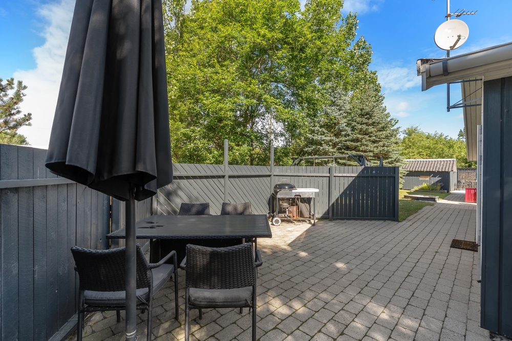 Solltet ihr nach dem Fußballturnier erschöpft sein, könnt ihr auf der großen Terrasse des Ferienhauses entspannen, die sich von Süden bis Westen des Ferienhauses erstreckt. Hier findet ihr bei gutem Wetter immer einen sonnigen Bereich. Die Terrasse ist abgeschirmt und teilweise überdacht, sodass ihr euch bei Bedarf auch im Schatten aufhalten könnt. Auf der Terrasse findet ihr gute Gartenmöbel, einen Grill und auch einen Sonnenschirm.
