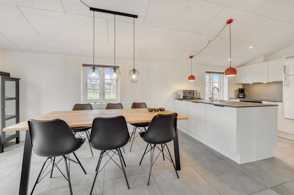 Dieses wunderschöne 5-Sterne Ferienhaus hat alles, was ihr zum Wohlfühlen braucht. Der Wohnbereich ist mit der offenen Küche, sowie der Ess- und Fernsehecke stilgerecht eingerichtet. Am großen Esstisch ist Platz, um die ganze Familie bei einer leckeren Mahlzeit zu versammeln, oder sich die Zeit mit lustigen Gesellschaftsspielen und Basteleien zu vertreiben.