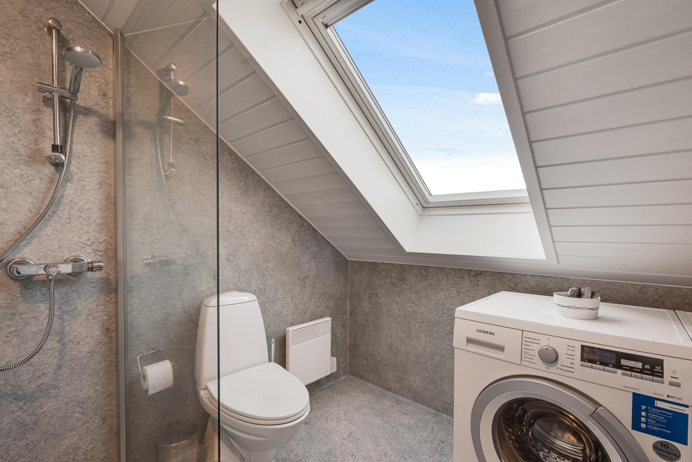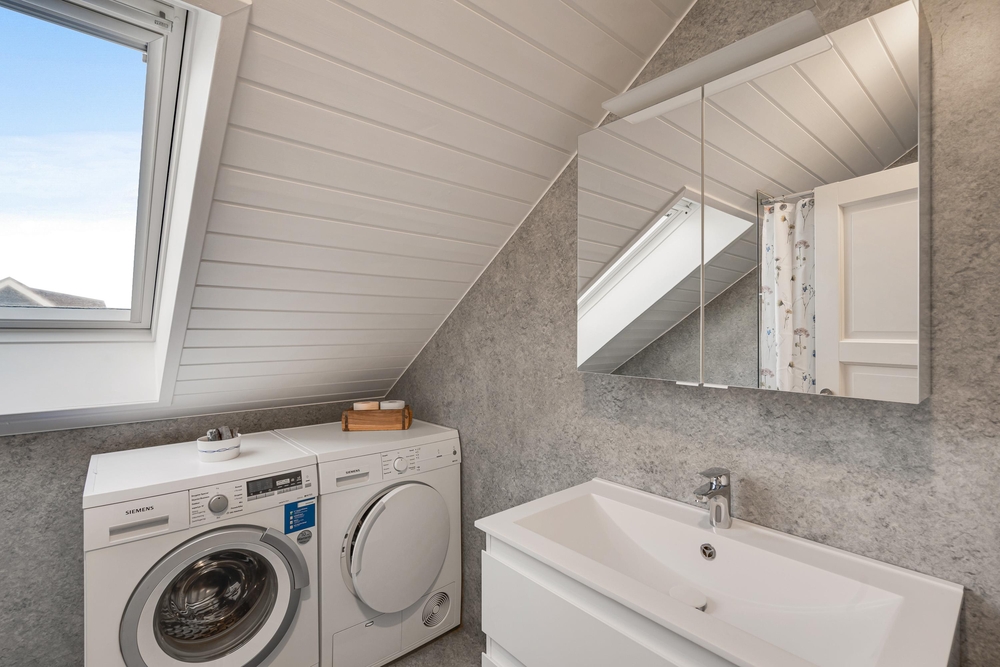 Praktische Helfer wie eine Spülmaschine, eine Waschmaschine und ein Trockner stehen auch in diesem Ferienhaus für euch bereit.