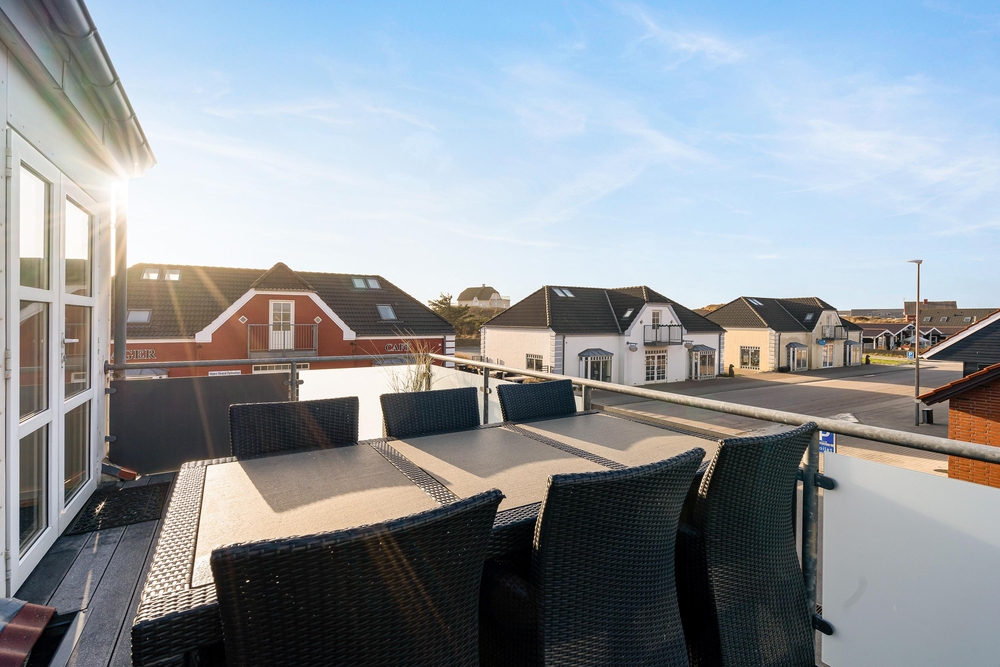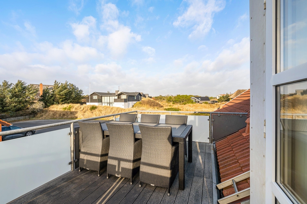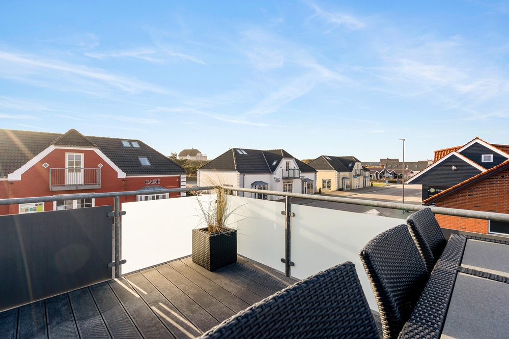 Die Ferienwohnung im ersten Stock hat eine Terrasse, die ihr vom Aufenthaltsraum aus betreten könnt. Hier stehen Gartenmöbel für euch bereit, die ihr besonders an sonnigen Tagen nutzen und dem Treiben im gemütlichen Urlaubsort Vejers zusehen könnt. Ein Gasgrill steht im Erdgeschoss in einem überdachten offenen Anbau für euch bereit, den ihr durch eine Treppe von der Ferienwohnung aus erreichen könnt.