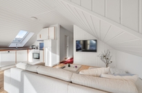 Nur 150 Meter von Strand und Meer entfernt liegt diese schöne Ferienwohnung auf der Adresse Vejers Havvej 58b im 1. Stock. Diese Ferienwohnung wurde im Jahr 2021 renoviert und bietet Platz für bis zu 5 Personen und der Familienhund ist hier auch herzlich willkommen.