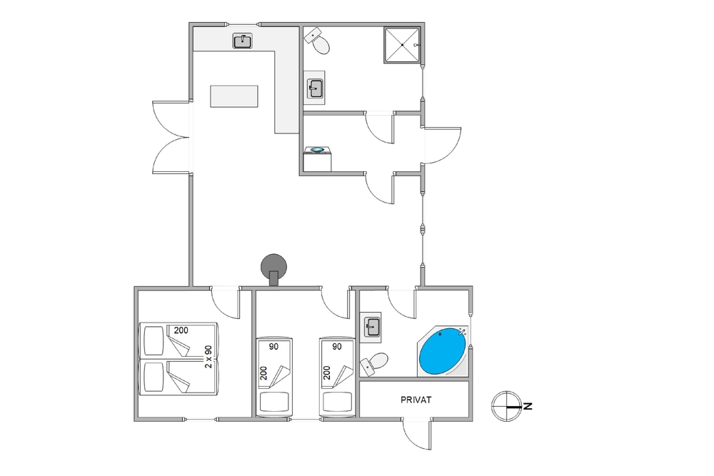 In der Küche habt ihr genügend Platz, um zusammen den Kochlöffel zu schwingen. Es gibt einen Geschirrspüler und einen 60 Liter Gefrierschrank. Die beiden Schlafzimmer im Ferienhaus sind gemütlich und mit 1 Doppelbett und 2 Einzelbetten ausgestattet. Nach einem ereignisreichen Urlaubstag könnt ihr hier in einen erholsamen Schlaf fallen und neue Energie für neue Abenteuer tanken.