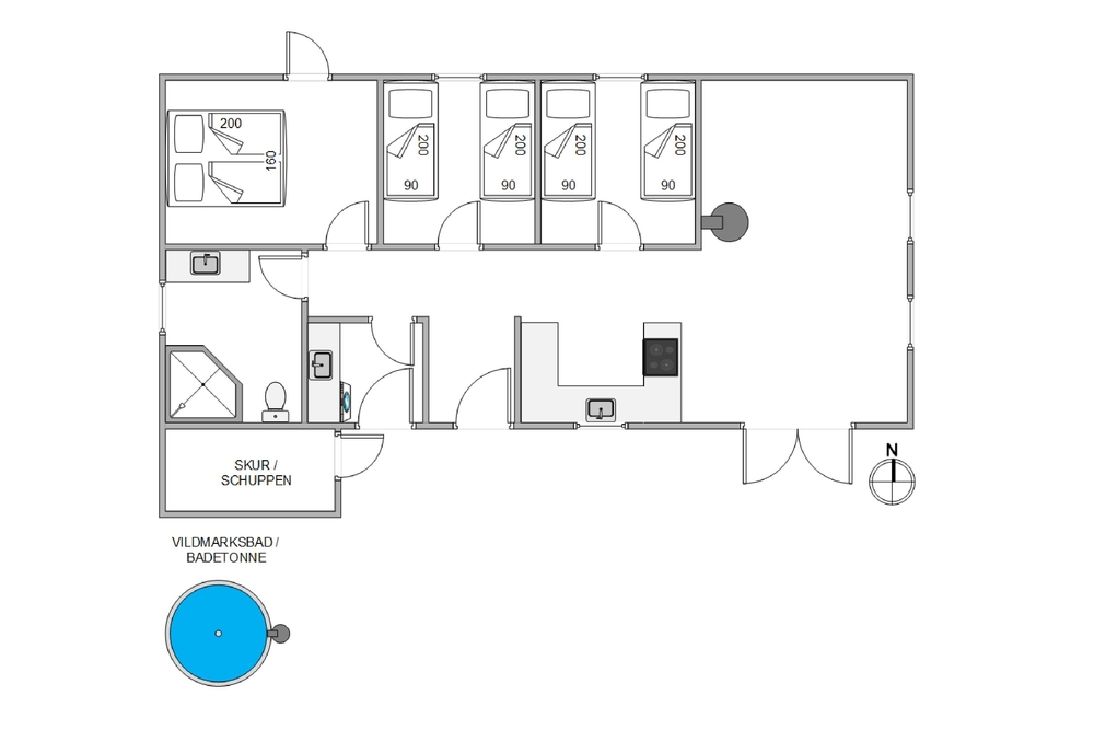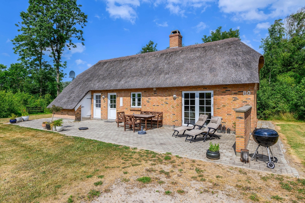 Wer ein klassisches Ferienhaus mit Reetdach sucht, für den ist die Ferienadresse im Vester Mosevej 80 genau das Richtige. Das 84 m2 große Haus liegt ungestört am Ende einer Sackgasse auf einem großen, grünen Grundstück und bietet Platz für 6 Personen und 2 Hunde. Ideal für die kleine Familie, die Ruhe und Entspannung sucht, als kleinen Leckerbissen hält das Haus eine Badetonne für euch bereit.