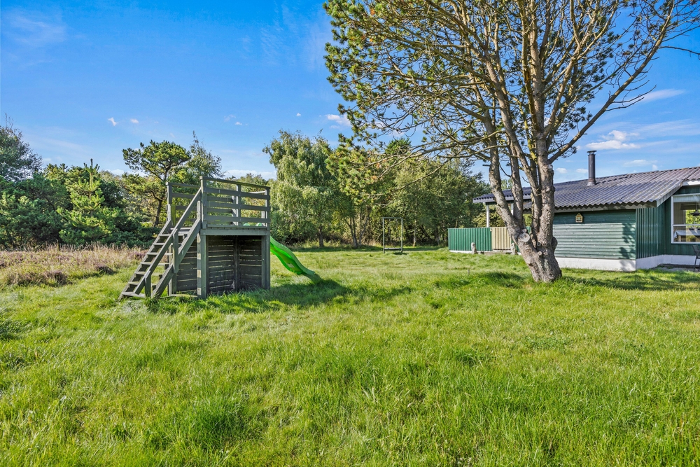 Das schöne, gut durch Bäume und Büsche abgeschirmte Grundstück ist in jeder Hinsicht der perfekte Rahmen für einen erholsamen Urlaub. Neben einer großen Liegewiese besteht der Garten aus gemütlichen Ecken, in denen sich die Kinder sowie euer Hund herrlich austoben können. Eine Schaukel und ein Spielturm werden euren Kleinen bestimmt viel Spaß bereiten.