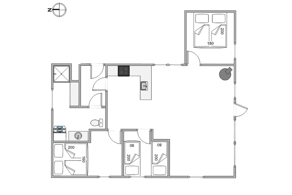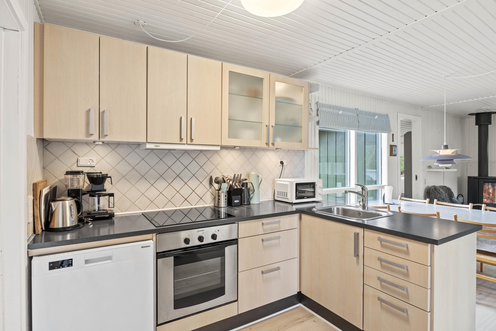 Das Herzstück des Sommerhauses bildet der offene Wohn-Essbereich mit der offenen Küche. Durch die große Fensterfront und die hellen Wände ist es hier hell und freundlich. Genießt die offene und freundliche Gestaltung auf der gemütlichen Couch oder zusammen am Esstisch, wo ihr mal wieder gemeinsam einen Spieleabend veranstalten könnt. Der ganze Wohn-Essbereich ist mit Teppichboden ausgestattet.