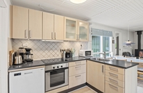 In der offen gestalteten Küche wurde an alles gedacht. Ob es die kombinierte Kühl-Gefrierkombination ist, die Mikrowelle oder die Spülmaschine, hier ist einfach alles vorhanden.