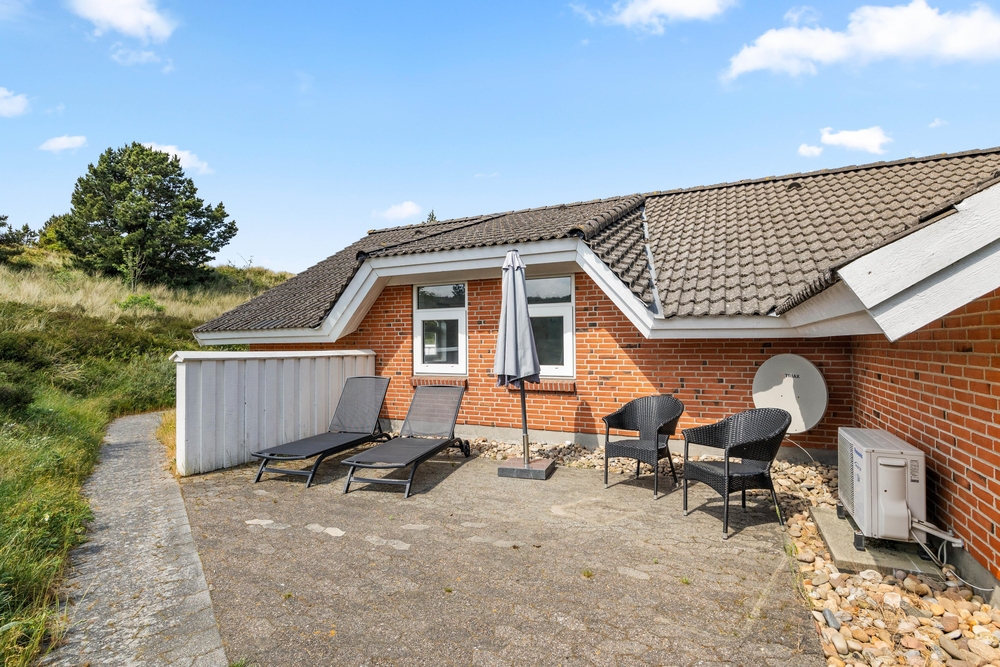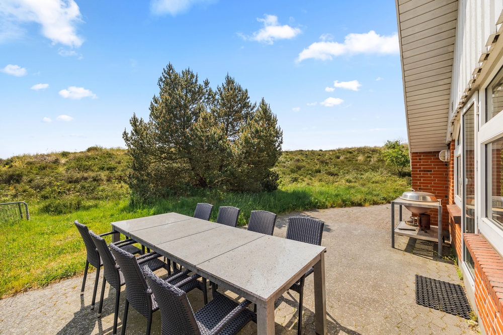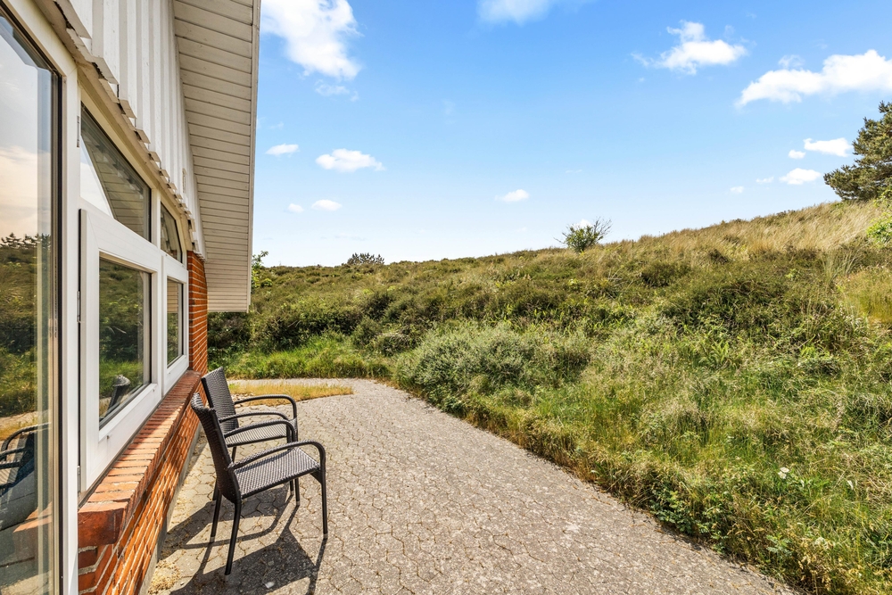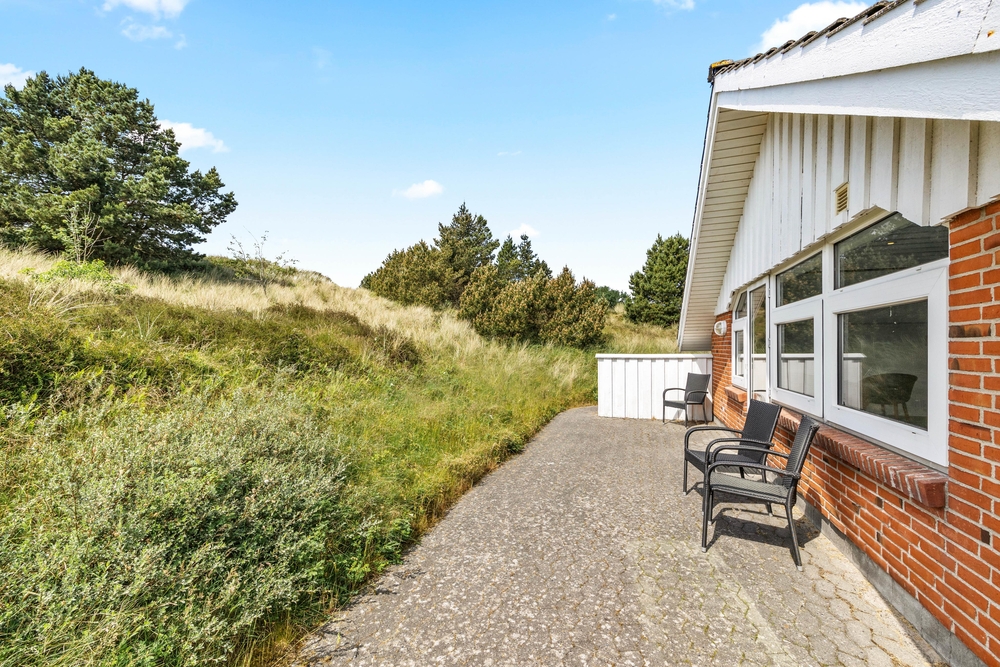 Um nahezu das komplette Ferienhaus findet ihr schöne Terrassenbereiche. Hier könnt ihr im Sommer mit der Sonne wandern um die Sonnenstunden in vollen Zügen zu genießen oder ihr habt die Möglichkeit euch in den Schatten zurückzuziehen. Auch vor der Haustür gibt es einen kleinen überdachten Teil, der sich für die erste Tasse Kaffee des Tages perfekt anbietet.