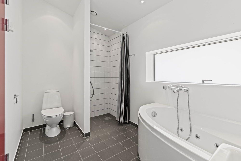 Beinahe das gesamte Ferienhaus ist mit einem schönen, gepflegten Holzboden ausgelegt und in den Bädern sind es Fliesen, inklusive Fußbodenheizung. Es gibt zwei Bäder mit insgesamt zwei Duschkabinen, einem Whirlpool und einer Sauna. Der Kaminofen im Wohnzimmer sorgt für ganz viel Wohlfühlatmosphäre und es bietet sich vor allem an kälteren Tagen an den Whirlpool und die Sauna zu nutzen, um zu entspannen und die wohlige Wärme zu genießen. Es empfiehlt sich außerdem, mit der energiesparenden Wärmepumpe zu heizen.