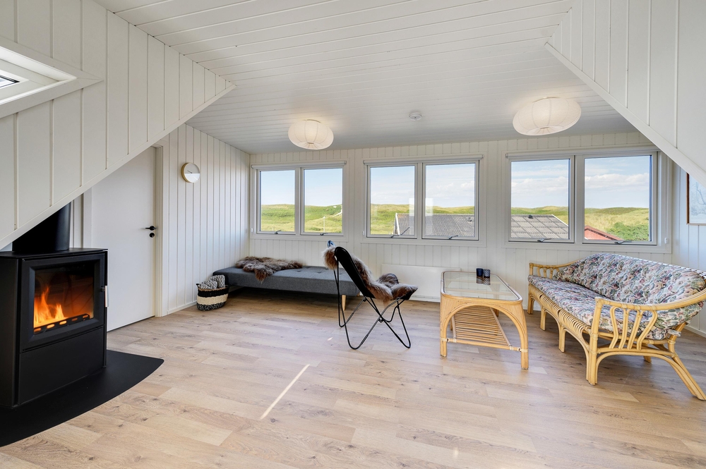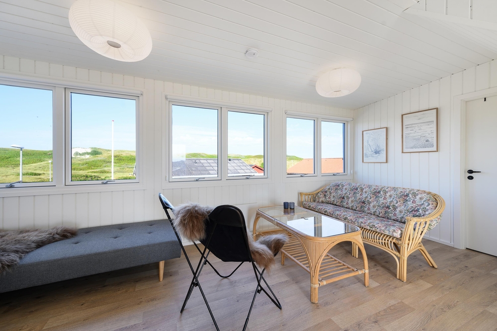 Gerade aus der oberen Etage habt ihr einen tollen Ausblick! Die vielen Fenster gewährleisten, dass es hell und freundlich in den Räumlichkeiten ist aber auch, dass ihr eine wirklich schöne Aussicht auf die angrenzende Dünenlandschaft habt. In wenigen Schritten erreicht ihr schon die herrliche Natur und seid in kurzer Zeit am Meer.