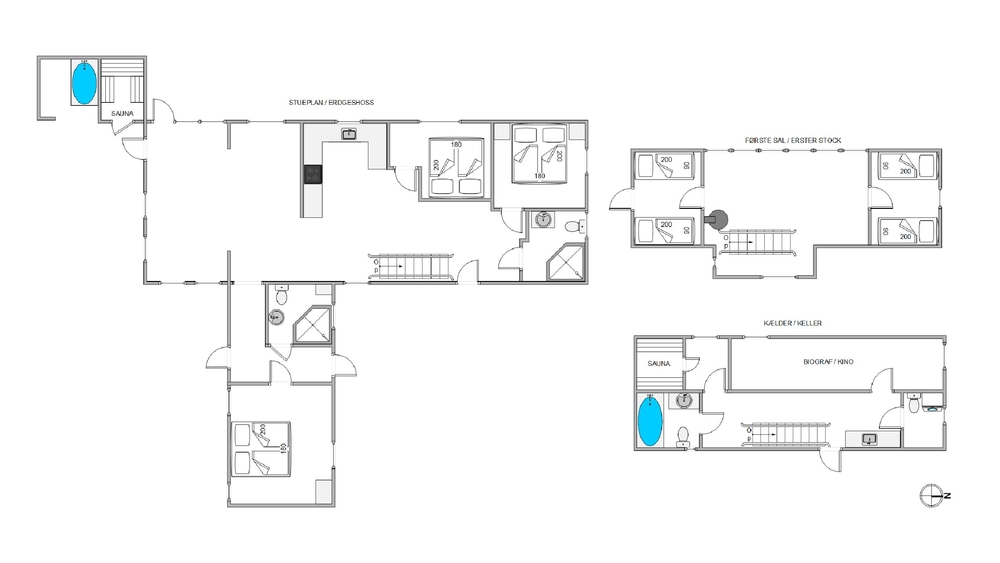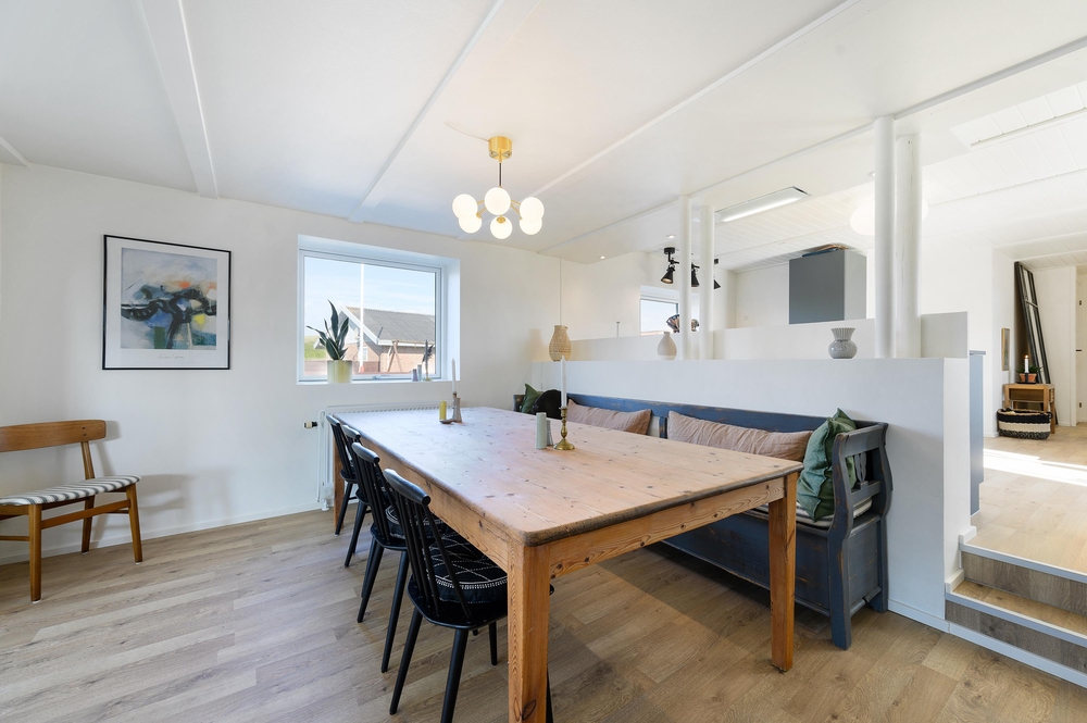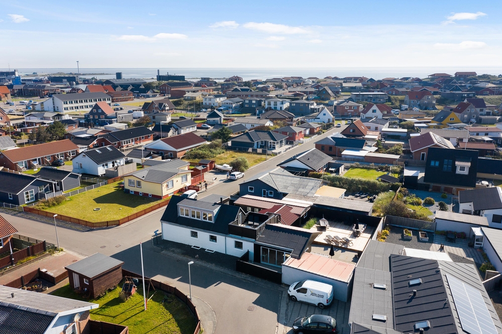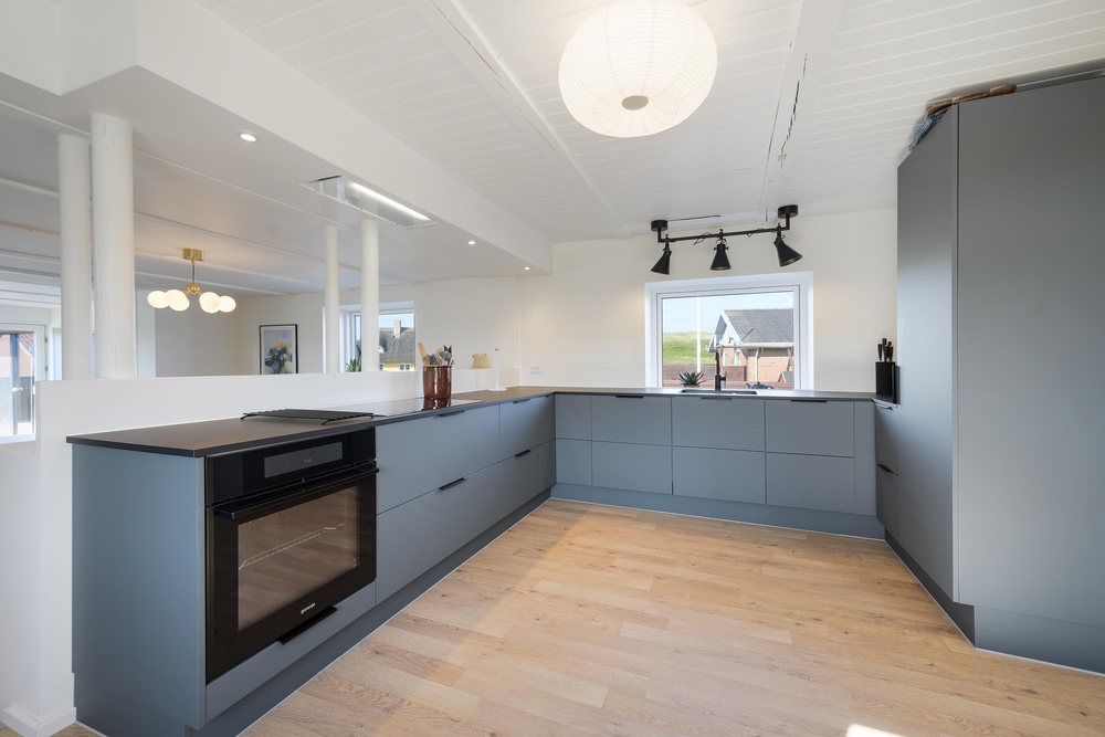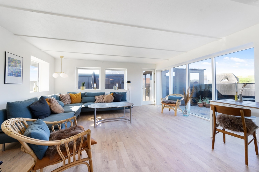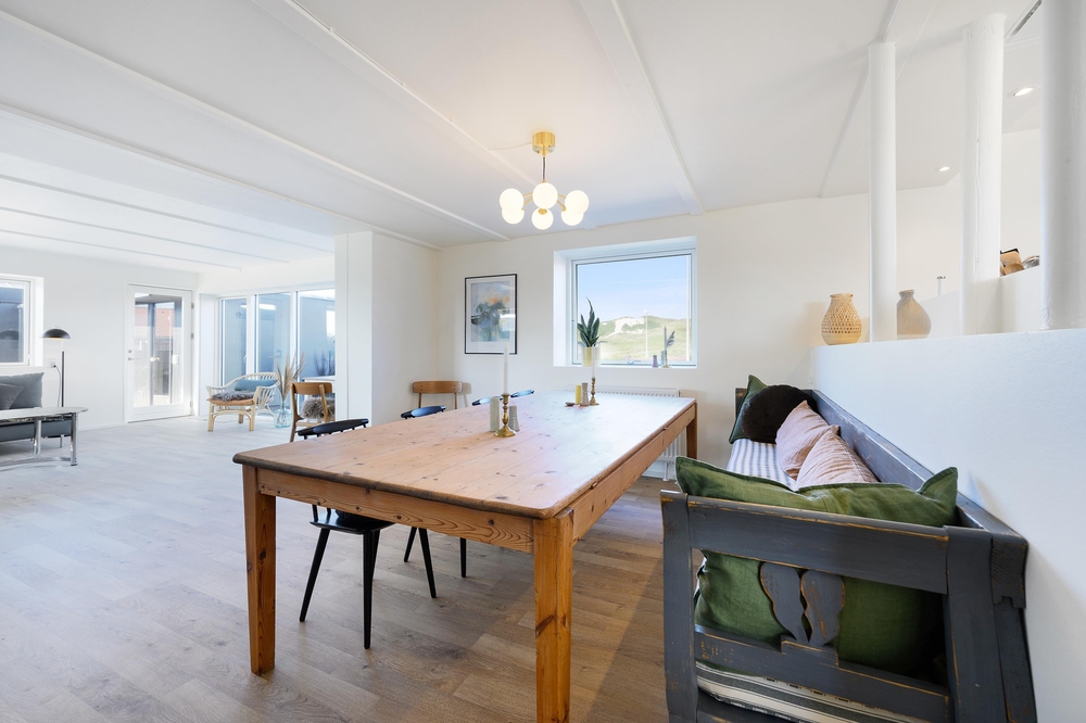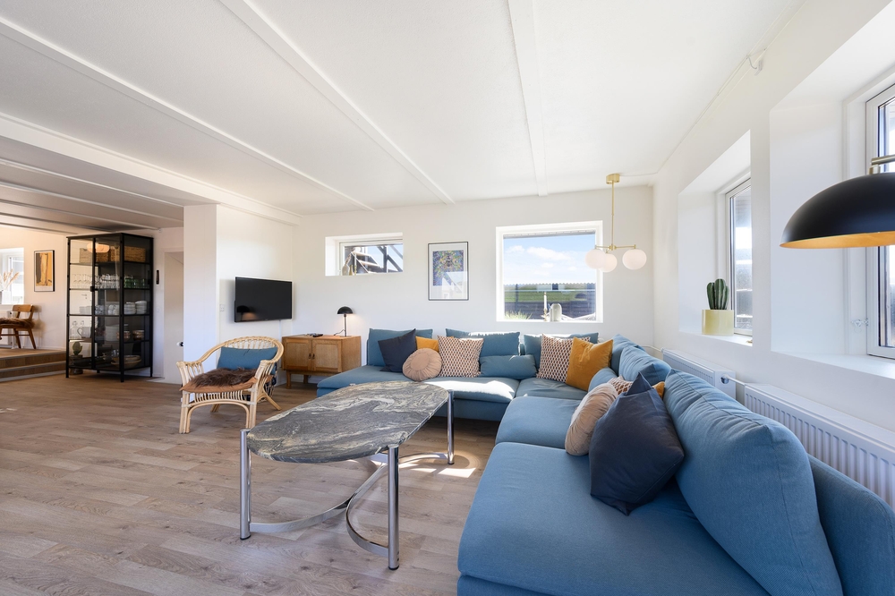 Das Haus, welches am Rande einer Wohnsiedlung in Hvide Sande, nur 200 Meter von den Dünen und dem Strand liegt, wurde in 2020 umfassend renoviert sowie stilgetreu und geschmackvoll eingerichtet. Die insgesamt 200 Quadratmeter verteilen sich auf unterschiedlichen Ebenen und euch stehen sogar 3 Badezimmer, 1 Gäste-WC sowie 5 Schlafzimmer zur Verfügung. Daher eignet sich dieses Ferienhaus auch gut für einen Urlaub in Dänemark mit Freunden.