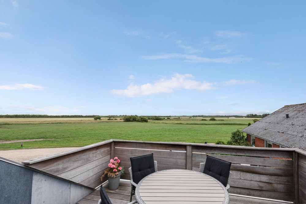 Die Ferienwohnung im Vesterhavsvej 60 bietet euch gleich 2 Balkone, die ihr nach Belieben nutzen könnt. Ob bei einem Glas Wein in der Sonne oder beim Genießen des Sonnenuntergangs mit Blick auf die weiten Felder ? diese Außenbereiche sind der perfekte Ort, um den Tag entspannt ausklingen zu lassen. Wenn ihr lieber im Schatten bleiben möchtet, bietet der Innenhof eine angenehme Alternative. Hier können eure Kinder im Sandkasten spielen, während ihr die Grillzeit im Freien genießt.