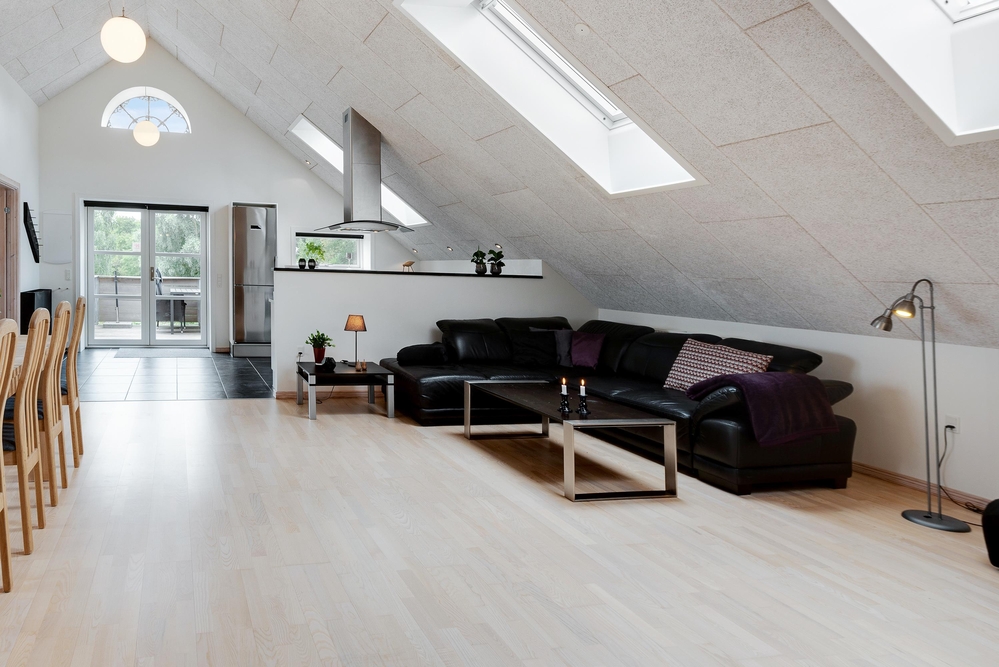 Diese 122 Quadratmeter große Wohnung beeindruckt mit einer hellen, modernen Einrichtung und einem offenen Loft, das für zusätzliche Schlafmöglichkeiten sorgt. Der großzügige Wohnbereich bietet viel Platz zum Entspannen und Wohlfühlen. Die großen Fenster lassen viel Tageslicht hinein und schaffen eine freundliche, einladende Atmosphäre.