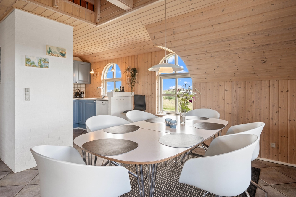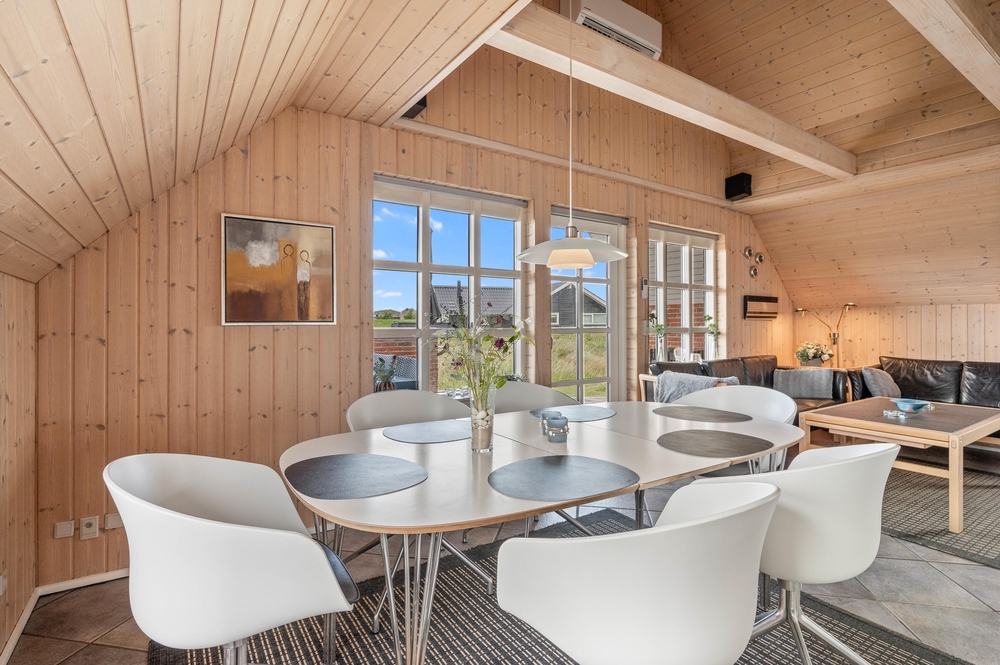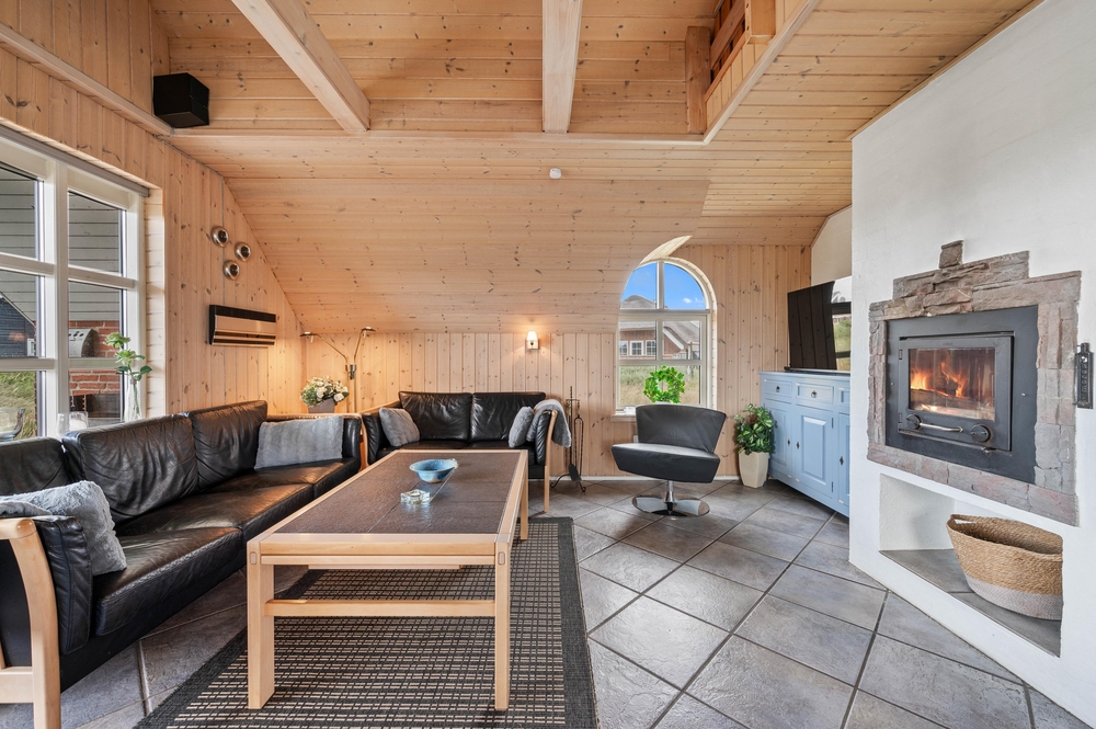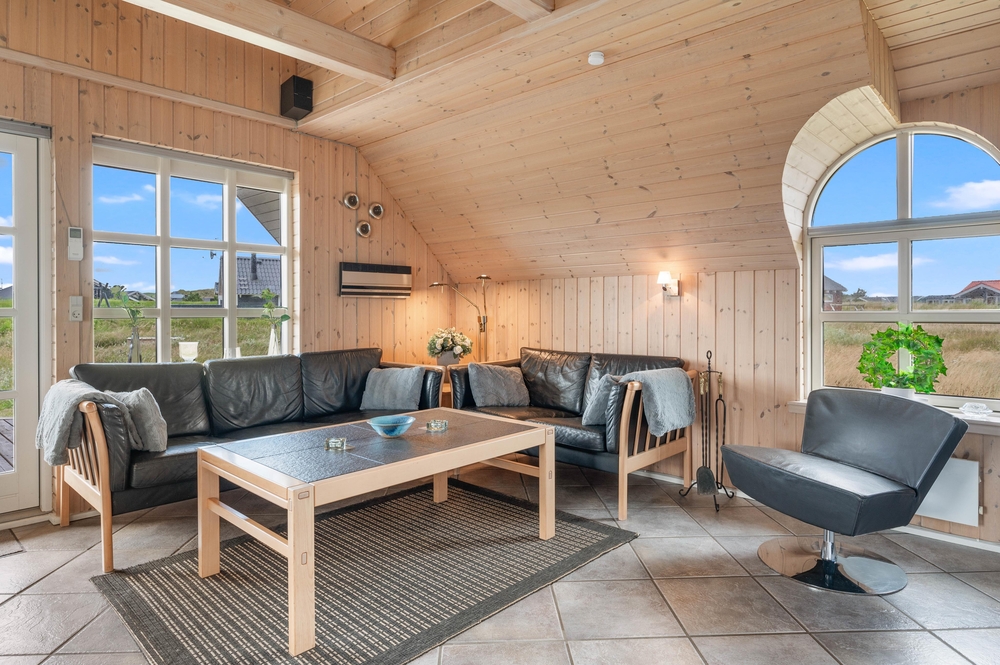 Mit direktem Zugang von dem gemütlichen Wohnraum kommt ihr auf die teilweise überdachte und abgeschirmte Holzterrasse, auf der ihr viele schöne Stunden verbringen könnt. Hier findet ihr die Möglichkeit ein schattiges Plätzchen zu finden und abends bietet der Terrassenwärmer die Möglichkeit den lauen Sommerabend beim gemeinsamen Grillen in Ruhe zu einem Glas Wein ausklingen zu lassen. Von der südgewendeten Terrasse könnt ihr die Aussicht auf den Ringköbing Fjord genießen.