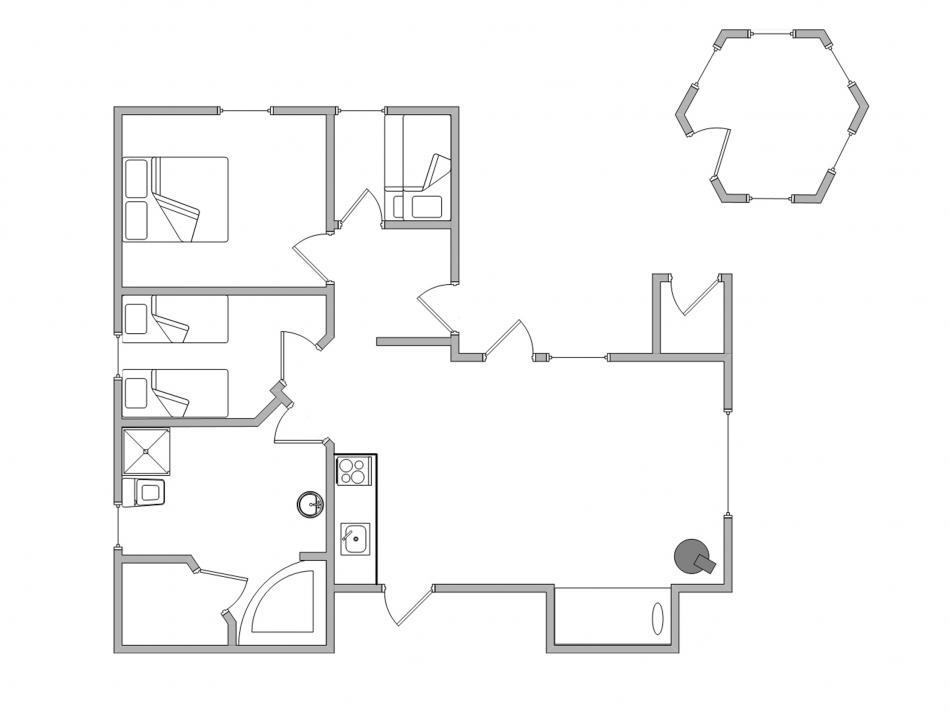 Zu eurem Ferienhaus gehört eine schöne Terrasse auf der Gartenmöbel und ein Grill zur Verfügung bereit stehen. Falls das Wetter es mal nicht zulassen sollte draußen zu sitzen, könnt ihr euch in den 14 m² großen Pavillon zurückziehen und die Aussicht auf die Natur von dort genießen.