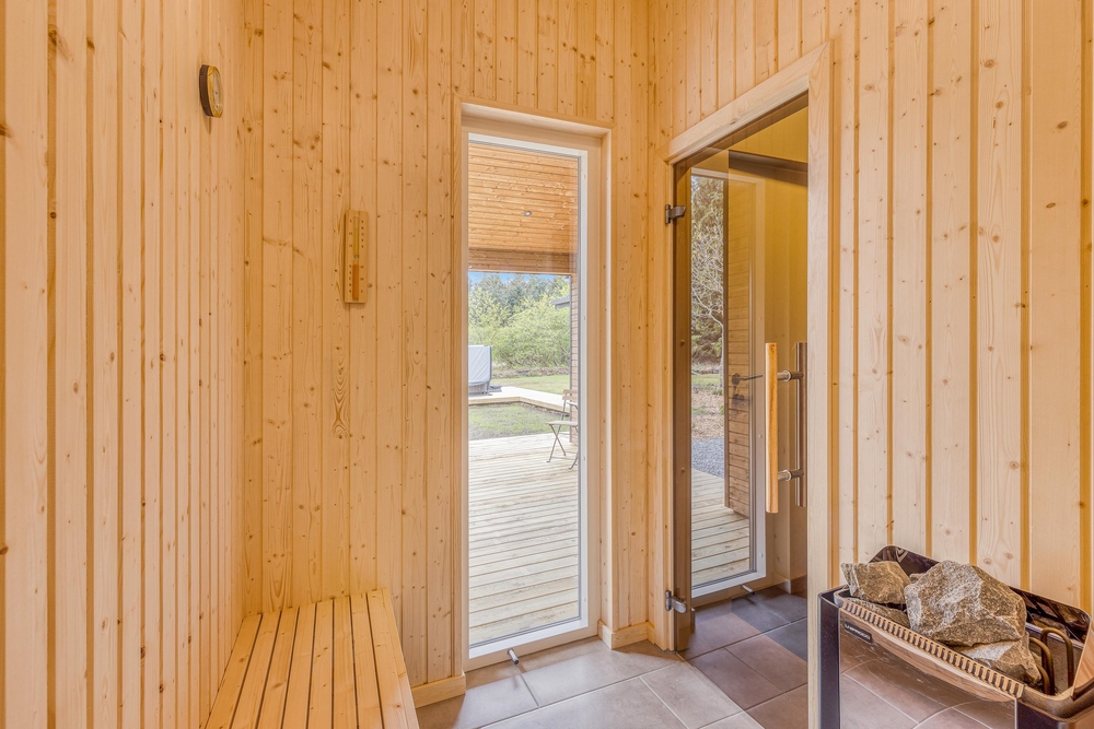 Über den Wellnessbereich hinaus verfügt dieses Ferienhaus auch über tolle Möglichkeiten, sich rund um das Haus aufzuhalten. Sei es auf der teilweise