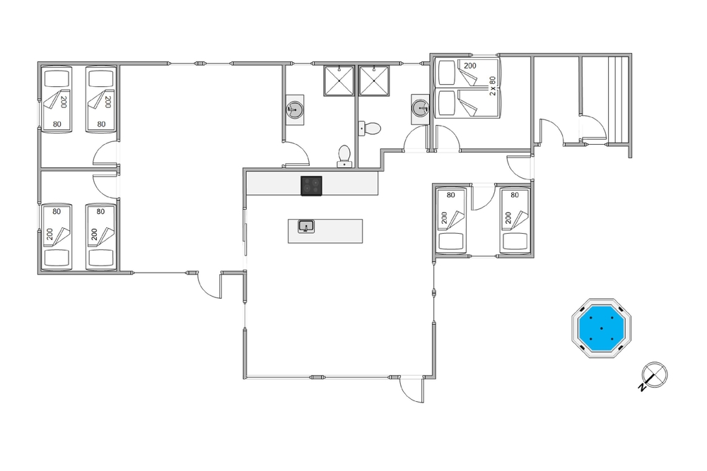 In Houstrup auf dem Weg Vestervang 20, am Rande eines ruhigen und im Grünen liegenden Ferienhausgebietes, erwartet euch dieses in 2021 erbaute Ferienhaus mit Platz für bis zu 8 Personen sowie für euren 1 Hund. Highlight in diesem Ferienhaus sind ganz klar der Außenwhirlpoo und die Außensauna. Schön ist aber auch die ruhige Lage im Außenbereich des Ferienhausgebietes von Houstrup.