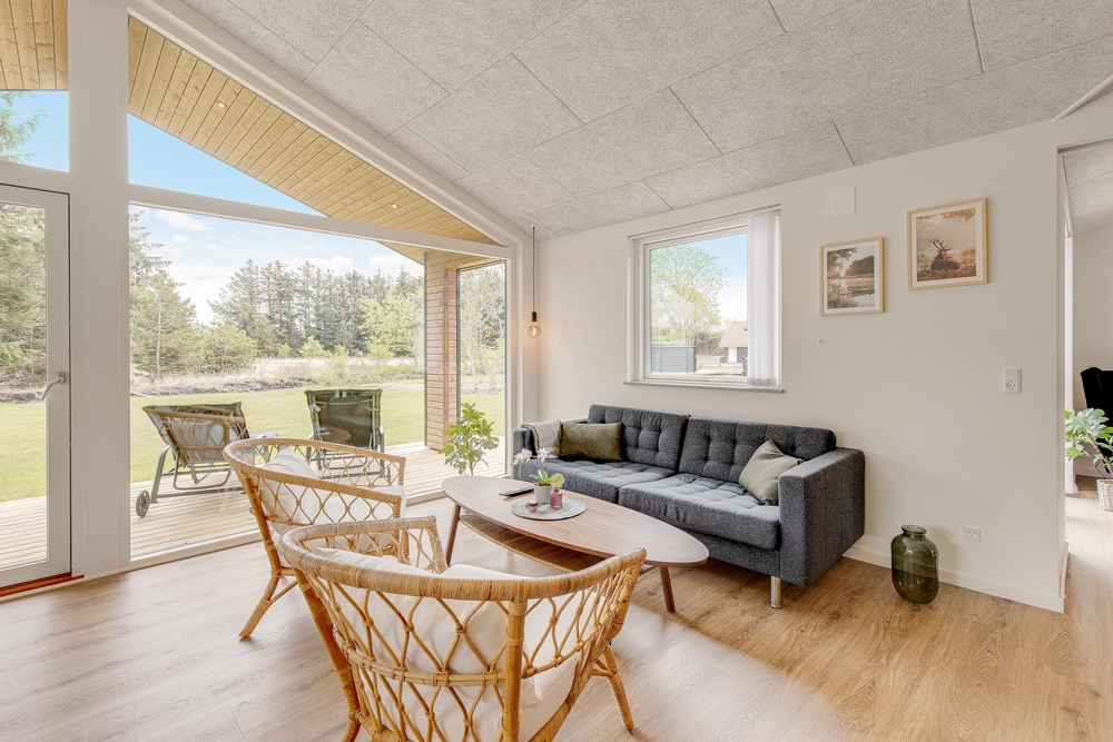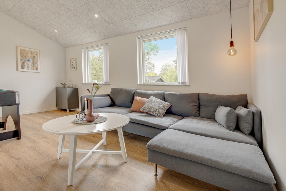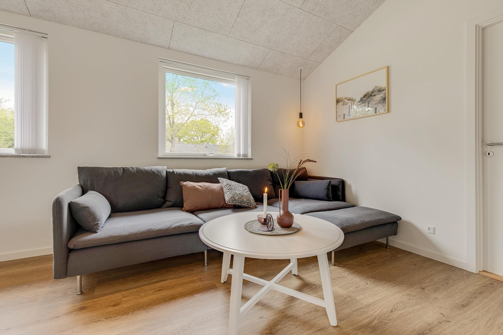 Die tolle Randlage im Grünen, auf einem Seitenweg dieser schönen Ferienhausumgebung, ist gerade für Familien mit Kindern bestens geeignet. Das Gebiet ist von kleinen Spazierwegen durchkreuzt und in der Nähe gibt es einen kleinen See, wo ihr an einem Sommerabend dem Froschkonzert lauschen könnt. Die perfekte Umgebung, um mit dem Hund eine kleine Runde zu gehen, bevor es später zu einer Wanderung in die Blåbjerg Klitplantage oder aber an den herrlichen Naturstrand geht.