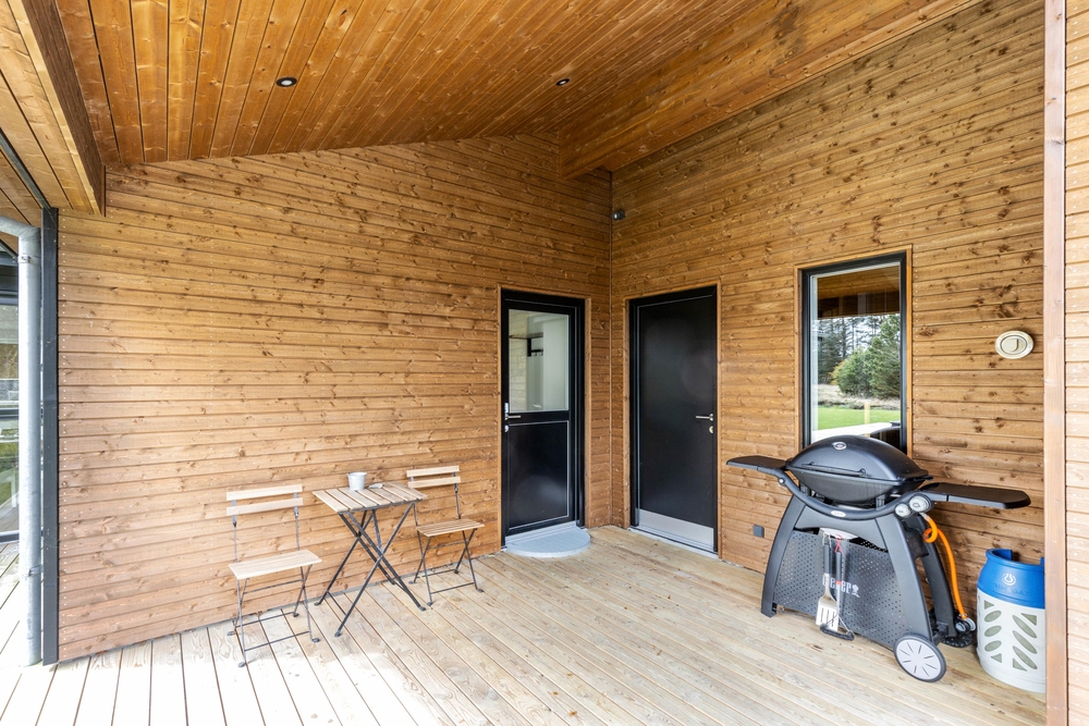 Über den Wellnessbereich hinaus verfügt dieses Ferienhaus auch über tolle Möglichkeiten, sich rund um das Haus aufzuhalten. Sei es auf der teilweise