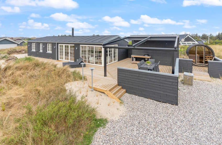 Dieses moderne Ferienhaus wurde 2022 renoviert und bietet Platz für 8 Personen in 4 Schlafzimmern. Das Haus liegt auf einem schönen Naturgrundstück, umgeben von den Dünen Westjütlands. In diesem Ferienhaus kannst du sogar 1 Haustier mitbringen. Darüber hinaus verfügt das Haus über eine tolle Außensauna und eine Außendusche.