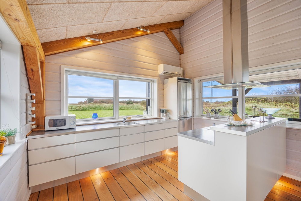 Wenn ihr ein modernes Ferienhaus sucht, wo ihr euren Urlaub entspannt verbringen könnt, dann seid ihr hier genau richtig. Euch erwarten ein gemütliches Wohnzimmer mit einem Kaminofen, ein toller Ausblick auf die Natur, eine moderne Küche und eine Wellnessecke im Badezimmer. Das Ferienhaus im Vestklitvej 2 D eignet sich somit nicht nur für Familien, sondern auch für gemeinsam vereisende Freunde und Paare.