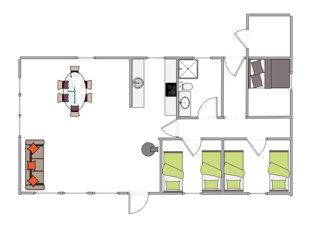 Dazu könnt ihr euch den Kamin anmachen, was für eine noch gemütlichere Stimmung sorgt. Die 6 Schlafplätze verteilen sich auf 3 Schlafräume; zwei Zimmer mit jeweils zwei Einzelbetten und eins mit Doppelbett.