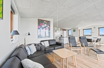 Egal, ob du im Sofa sitzt, in der funktionellen Küche Essen vorbereitest oder das Essen am Esstisch genießt, durch die großen Panoramafenster des Wohnzimmers hast du die ganze Zeit Aussicht zur Nordsee.