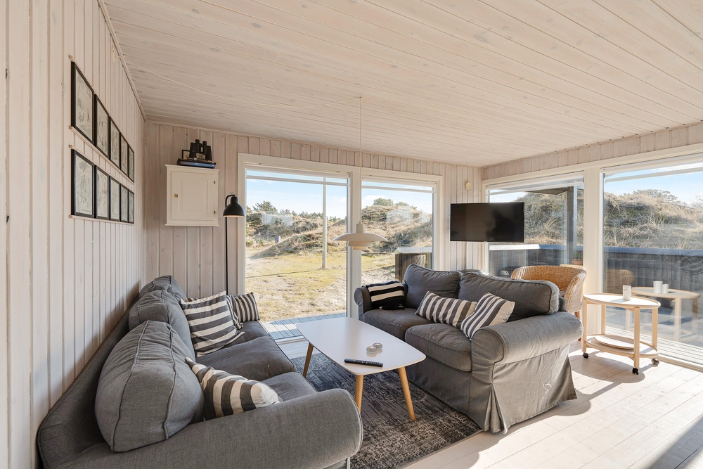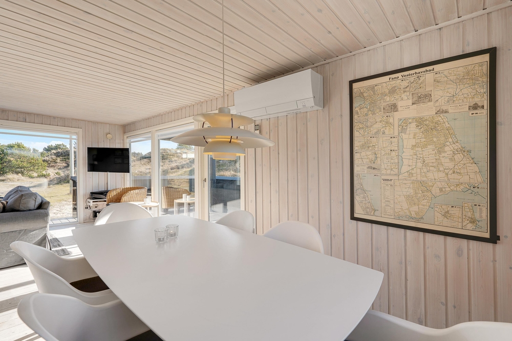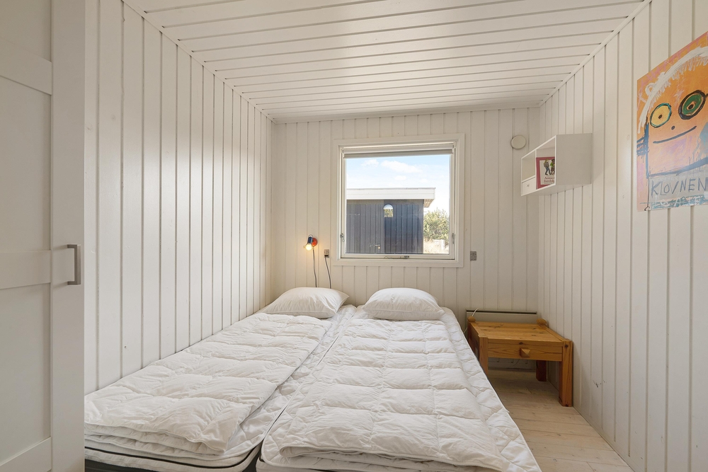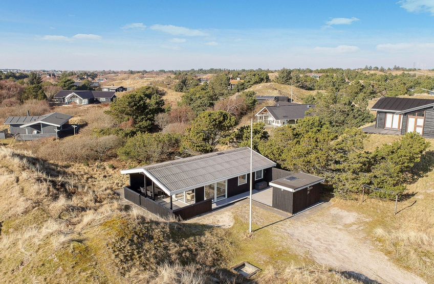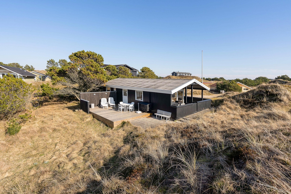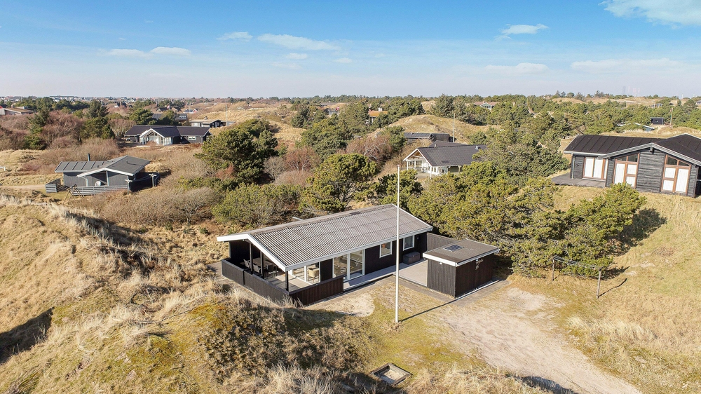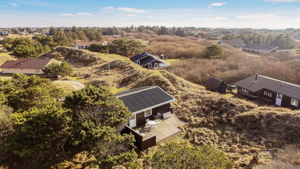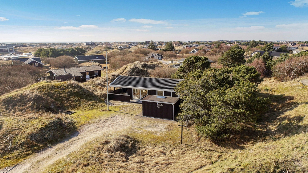 Nur 700 Meter entfernt vom Strand, eingebettet in die hügelige Dünenlandschaft, liegt auf Vindgaf 36 dieses kleine und feine Ferienhaus mit Platz für bis zu 6 Personen. Auf insgesamt 65 m² findet ihr 3 Schlafzimmer, 1 Badezimmer sowie den Wohn- und Essbereich mit Küche. Beheizt wird dieses Sommerhaus mit einer modernen, energiesparenden Wärmepumpe, sodass ihr die von euch gewünschte Temperatur wählen und euch entsprechend wohlfühlen könnt.