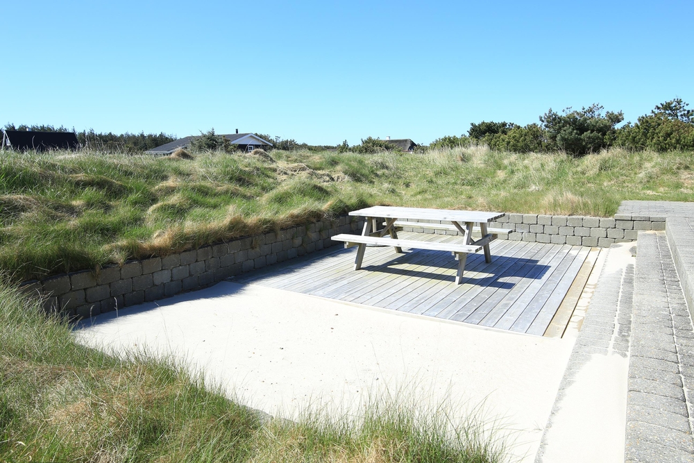 Die versunkene Sonnenterrasse an der Südwestseite des Ferienhauses wird bei Familien mit Kindern sehr beliebt sein, da sie mit einem großen Sandkasten verbunden ist. So könnt ihr eure Kinder gut im Auge behalten, während ihr am Tisch sitzt und eine kalte Erfrischung genießt oder an die Sonne genießt.