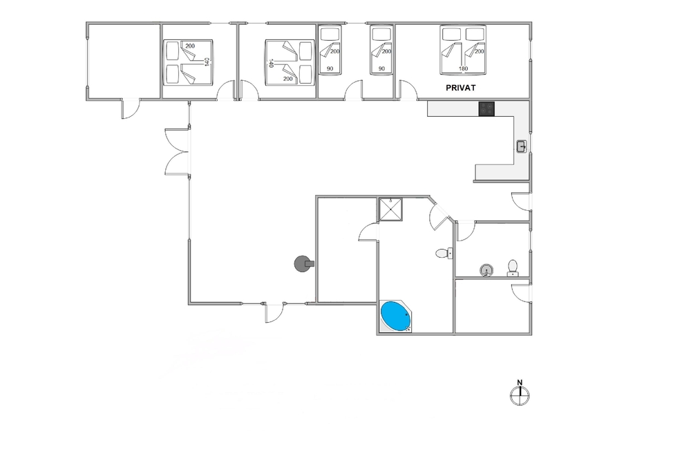 Das Ferienhaus hat eine gute Raumaufteilung mit einem großen Wohnzimmer und 3 Schlafzimmern. 2 dieser Zimmer sind mit Doppelbetten ausgestattet, während das letzte Zimmer mit 2 Einzelbetten ausgestattet ist. Aber das Herzstück des Ferienhauses ist zweifellos das große Wohnzimmer mit einer hohen Decke und großen Fenstern, die das Tageslicht ins Ferienhaus lassen. Hier findet ihr Raum für Aktivität und Entspannung ? die beiden wichtigsten Bestandteile eines Urlaubs.