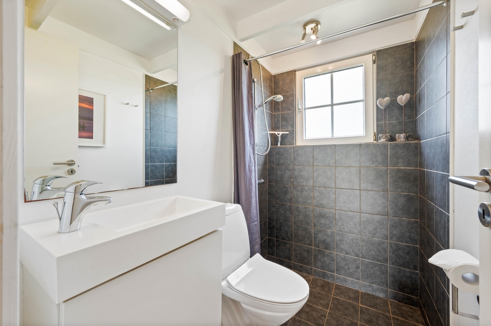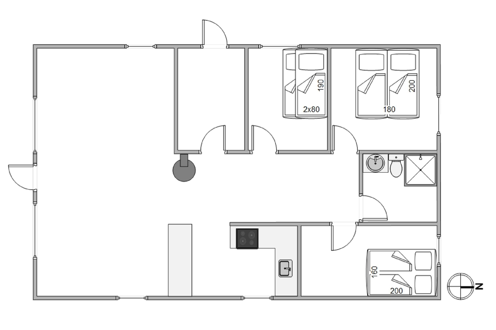 Das Ferienhaus verfügt über einen großen Wohnraum, der das Wohnzimmer, die Küche und das Esszimmer in einem großen Raum vereint. Das Wohnzimmer ist das Herzstück des Ferienhauses und der perfekte Ort, um mit der Familie gemütliche Momente mit leckerem Essen, lustigen Spielen und guten Filmen im Fernsehen zu verbringen. Zünde ein Feuer im Holzofen an, um die gemütliche Ferienhausatmosphäre zu vervollständigen. Das Badezimmer verfügt über eine Fußbodenheizung, damit ihr den Tag nicht mit kalten Füßen beginnen müsst.
