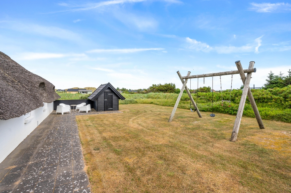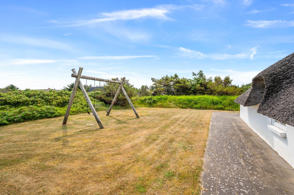 Am Abend könnt ihr draußen versammeln und gemeinsam ein leckeres Abendessen auf dem Grill zubereiten. Was gibt es Schöneres, als einen schönen Urlaub mit einem guten Steak vom Grill und einem kalten Getränk ausklingen zu lassen. Der große Garten wird sowohl zwei- als auch vierbeinigen Urlaubern gefallen. Für die Kinder gibt es im Garten eine Schaukel, die sicher ein Hit ist. Das Ferienhaus liegt in einem ruhigen Gebiet, sodass ihr im Garten und auf der Terrasse die Ruhe und die Natur Westjütlands genießen könnt.
